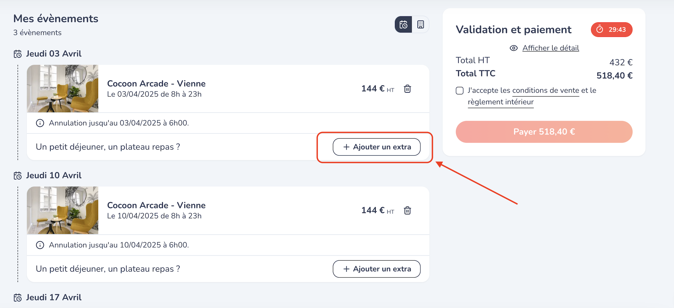 💡 Chaque extra a un minimum de commande, et ne peut pas dépasser la capacité d’accueil de la salle.