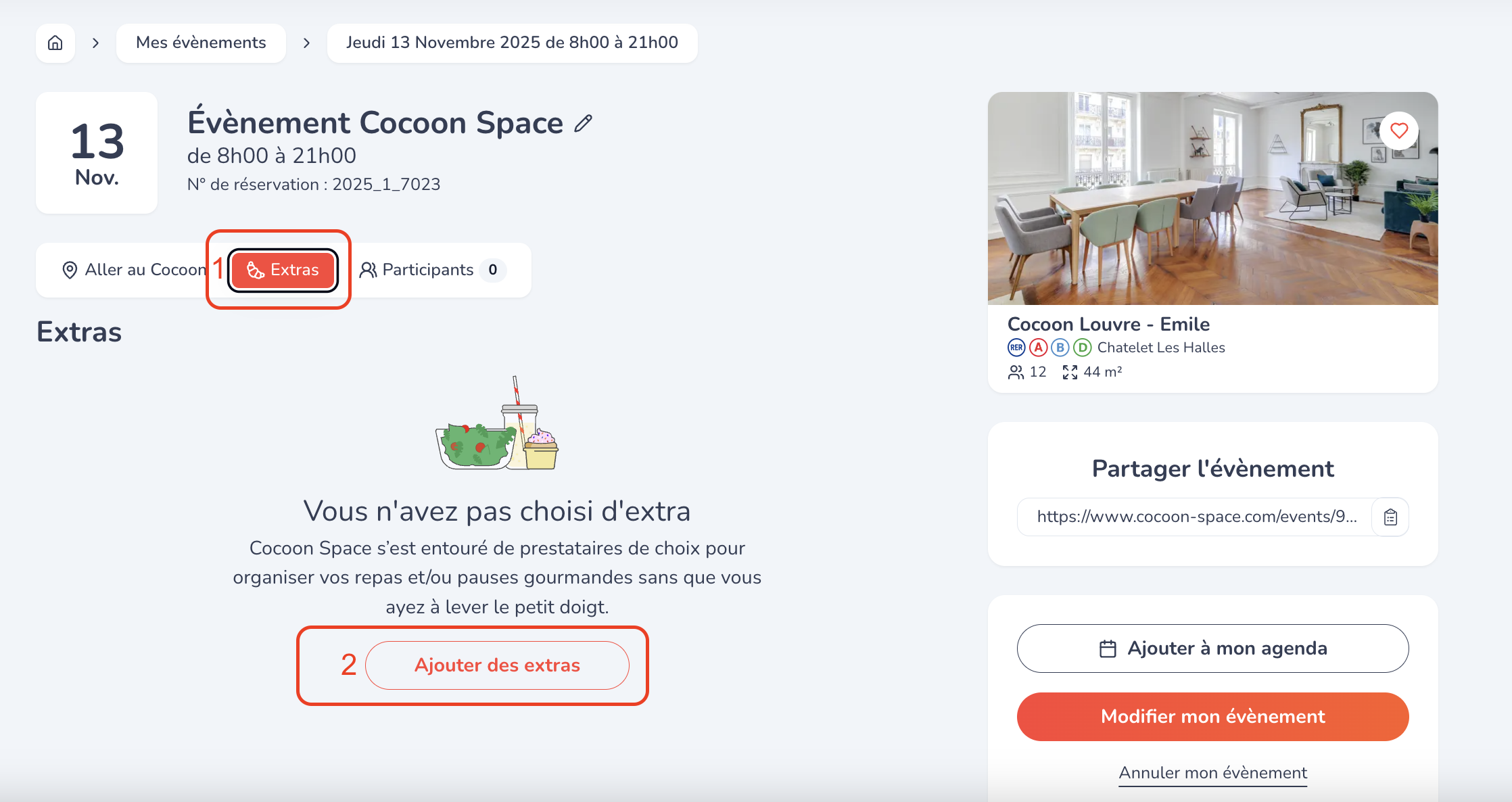 Extras (repas, petit-déjeuner, gouter…) : comment les ajouter à ma réservation ?