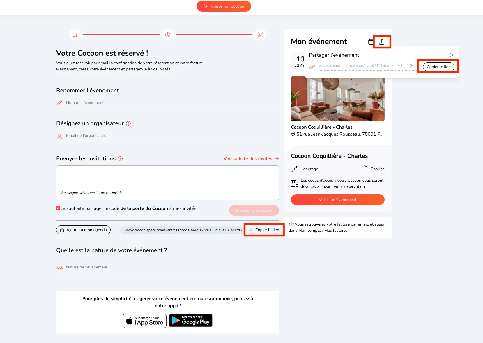 Depuis votre espace Cocoon, allez dans “Mes évènements”