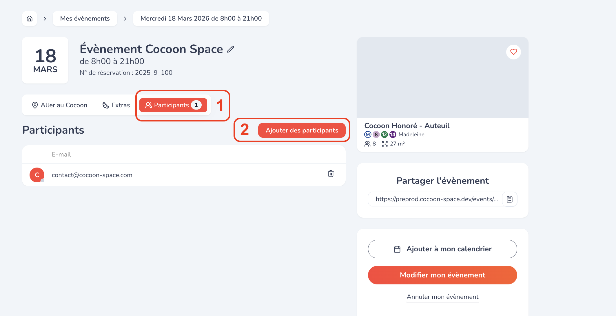 Vos invités n’ont aucun accès à la réservation : ils ne peuvent ni modifier, ni annuler