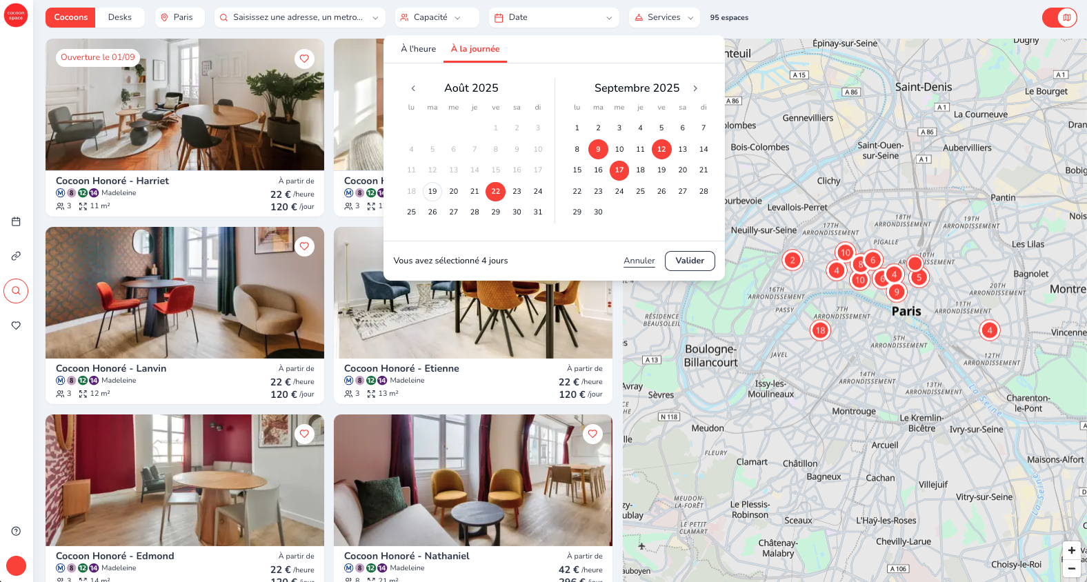 Trouver les Cocoons disponibles pour plusieurs dates